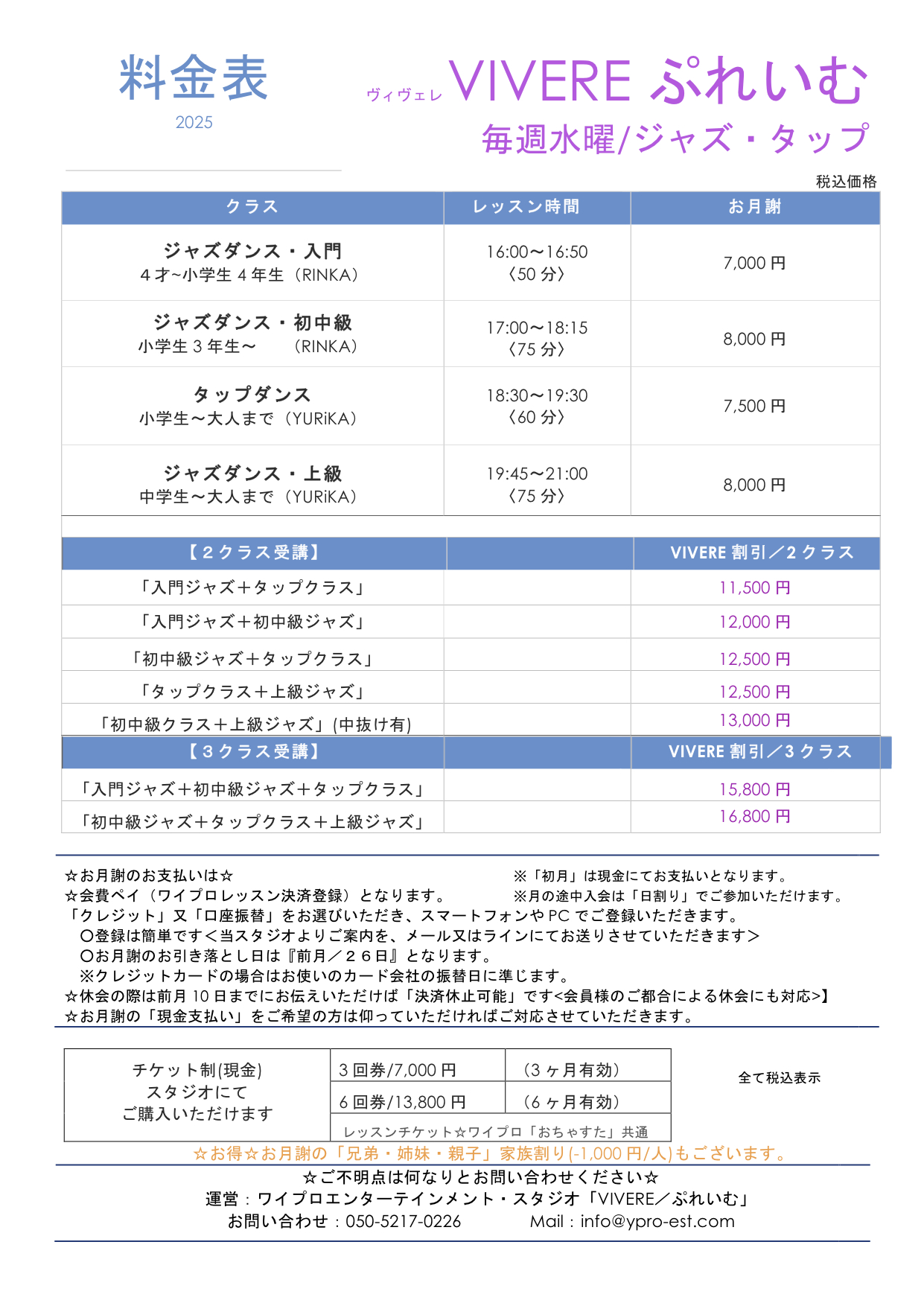 | お問い合わせ 050-5227-0226 ヴィヴェレ/VIVERE【運営:ワイプロエンターテインメント・スタジオ】 |